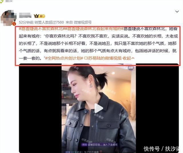 并且还表示她觉得森林北看起来很装,长得不是不好看,只不过自己不喜欢,真是不要太搞笑了。 网友坦言葛女士不是不喜欢这些女人,是汪先生喜欢谁她就讨厌谁,还是有点道理的,